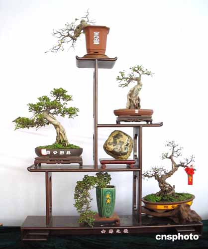 | 盛況空前的國家級(jí)第六屆海峽兩岸花卉博覽會(huì)11月28日在福建漳州開幕。本屆重點(diǎn)活動(dòng)項(xiàng)目之一的盆景藝術(shù)展覽參展作品為歷屆最多。評(píng)委會(huì)評(píng)選出金獎(jiǎng)盆景15件、銀獎(jiǎng)35件、銅獎(jiǎng)49件。中國女排主教練陳忠和參展的盆景組合作品《女排之歌》獲得金獎(jiǎng)。作者:林長華