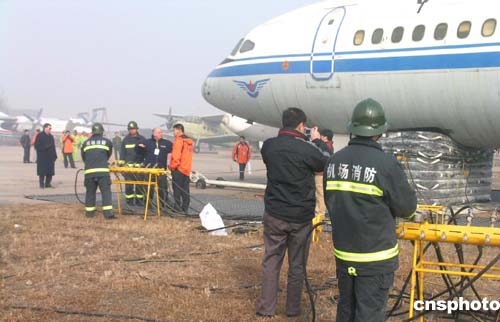中國民航十一月三十日在天津舉行殘損飛機搬移設備培訓演練,以進一步提高中國民用機場應急救援水平,使發生事故的機場盡快恢復運行。作者:中新社