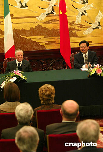 圖:胡錦濤與意大利總統錢皮共同會見記者