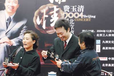 中新網12月9日電 據北京娛樂信報報道,明(10)天晚上,“款款深情——費玉清2004北京演唱會”即將在工人體育館上演,費玉清將現場演唱近50首懷舊金曲。從上世紀30年代的《夜來香》等直到80年代末的《船歌》,費玉清演唱會可以說是對大半個世紀來國語流行曲的一次最全面的回顧。在年底一系列的演唱會中,這次個唱被認為是一場“可以坐著聽的演唱會”,如果對照著國語流行音樂跌宕起伏的發展欣賞費玉清的演唱,這場個唱確實也多了一層坐看潮起潮落的韻味。