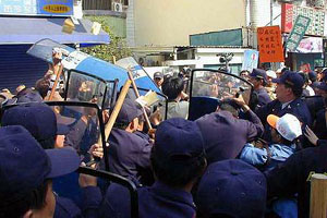 屏東縣“立委”造勢活動中爆發激烈沖突,造成3人送醫。(臺灣“中國時報”圖)