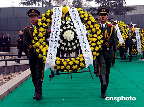 日本東鐵路工會、日本佛教徒和平訪問團等日本和平友好人士參加了今天的悼念活動。并在會場上打出了“我們決不忘記南京大屠殺的事實”、“反對日本向海外派兵”等橫幅標語。
