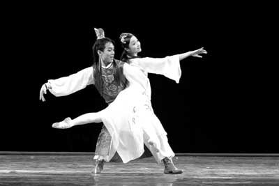 趙明的第一個承諾是:“大家都說《紅樓夢》難做,原來的著作太大,大到沒人敢碰,雖然我的舞劇從原書的120回濃縮到舞臺上的90分鐘,我可以保證我的舞蹈可以讓每一個觀眾明白舞臺上到底發生了什么。換句話說,就是每個觀眾都可以看懂我的《紅樓夢》中的故事到底講了些什么。”舞劇的開場堂堂皇皇,賈府各色人等魚貫出場,奢華也好、靚麗也好,只有當寶、黛、釵三人紛沓而至的時候,音樂和舞蹈才呈現出真正的眷戀。集萬千寵愛于一身的寶玉精靈般出場,寶釵的出場則要雍容華貴得多了,她代表一種身份的象征,而林妹妹走上舞臺的一剎那,人們就會感受到舞臺上刺骨的冷,最終點化了全局的宿命——為愛而亡。不用注解、不用說明,趙明的舞劇就這樣在開始的時候已經讓觀眾明白了每個人物的身份和他們在戲劇中的命運。