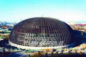 獨特的設計,工程的建設難度可想而知。根據設計,國家大劇院的出入口都設在地下,主體建筑外環繞著一圈人工湖,觀眾從這個地下通道進出大劇院時,“頭頂”就是水面,這就使國家大劇院的地基最深處達到將近33米,這可以算得上目前全國公共建筑中最深的基礎了.劇院的橢球體外形由一根根弧形鋼梁組成,這個東西跨度達212米,南北跨度為143米總重量達6750噸的鋼鐵天穹,幾乎可以將北京工人體育場全部罩住。另外,國家大劇院采用了原本是用于制造飛機等航空器的鈦金屬,僅這一項的投資就達3000多萬元。