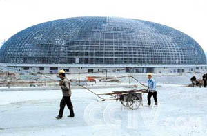 大劇院從2001年12月13日正式開工到現在,主體建筑鋼筋混凝土主體結構,殼體鋼結構工程全部完成,目前正在進行殼體層面工程、舞臺機械和機電設備安裝工程以及裝修和裝飾工程。預計明年年底將竣工,2006年四五月間將投入使用。目前,國家大劇院面臨著缺少建設資金的巨大難題。按最初設計國家大劇院總投資為26.8億元,但建成實際需要約30億元,還有2億多元的缺口。另外,據測算,國家大劇院投入使用后每年需要的投入將達到7000萬元。