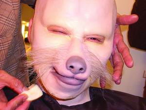 為了這個角色,張學(xué)友日前在《雪狼湖》排練最緊張的階段,特地抽出時間來制作“老狼”這個造型,還專程請來了香港著名造型師奚仲文來設(shè)計,而負(fù)責(zé)制作的則是香港大名鼎鼎的特技化妝師陳國雄。為追求逼真的效果,整個模型的制作過程及其復(fù)雜,在根據(jù)張學(xué)友的頭部、面部特征制作“老狼”頭部模型時,僅僅倒模一個程序,就整整花費(fèi)了六個小時的時間。倒模做出形狀之后,制作人員還要將一絲不茍做出的毫發(fā)必現(xiàn)的模型給學(xué)友試妝,然后不斷修整,直至這個“老狼”與張學(xué)友合二為一。這僅僅是為了“老狼”這個形象,從倒模制作到拍攝完畢,花去眾多造型、設(shè)計人員以及學(xué)友整整3天的時間,耗資更是超過六位數(shù)。