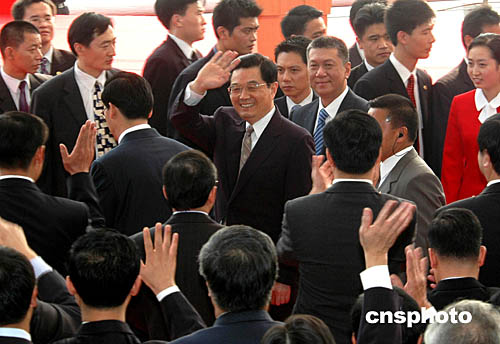 中國(guó)國(guó)家主席胡錦濤今天上午十一時(shí)三十分許蒞臨澳門,在下飛機(jī)以后不到三個(gè)小時(shí),就出現(xiàn)在澳門西灣大橋落成典禮現(xiàn)場(chǎng)。這是胡錦濤主席抵達(dá)澳門以后出席的第一場(chǎng)正式活動(dòng)。