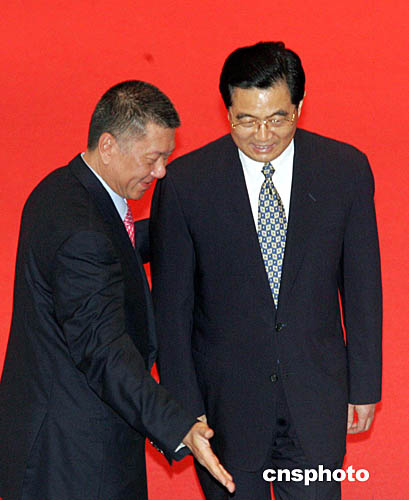 國家主席胡錦濤在澳門回歸五周年慶祝大會上發表重要講話后,何厚鏵請胡錦濤就座。