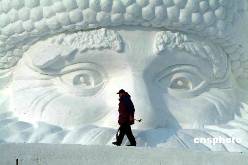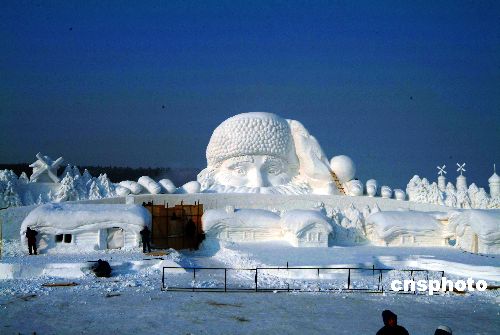 | 2004年12月22日,長春凈月潭國家森林公園的巨型“圣誕老人”。當日,經過長春凈月潭國家森林公園的上百名工作人員的日夜忙碌、35位哈爾濱專業冰雕師的精雕細琢,世界最大單體雪雕作品--“圣誕老人”在吉林長春凈月潭國家森林公園冰雪樂園全部竣工。據悉,該“圣誕老人”現體量長80米、高17米、厚25米,用雪量7000立方米,工程量和體積為世界之最。24日,“2005屆中國長春冰雪旅游節暨凈月潭瓦薩國際越野滑雪節”將于長春開幕。作者:樊甲山