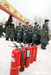 十二月二十三日,北京冬季書市組委會與東城警方聯合舉行消防演練,此活動主要在于加強即將在地壇舉辦的冬季書市的安全防范以杜絕火災。中新社記者:任海霞