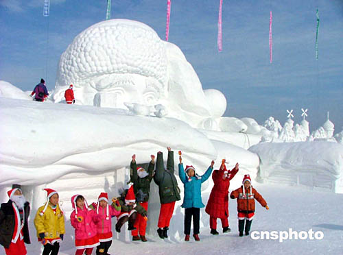 圖:世界最大“圣誕老人雪雕”亮相長春