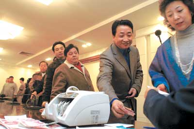 昨天下午記者趕到臨時在昆侖飯店租住的捐款辦公室時,看到已經(jīng)有多位藝人來到了現(xiàn)場,手中拿著厚厚的幾疊現(xiàn)金。發(fā)起人之一的張國立偕夫人鄧婕一同前來,他們告訴記者,遠在外地拍戲的兒子張默聽說了這次捐款后也要出一份力,所以這次他們除了各自捐款一份外,還帶來了兒子的一份,共計三份捐款。張國立也表示,許多演員都愿意做善事,但內地沒有“演員工會”這樣的組織,這次的行動是大家自發(fā)組織起來的,希望演藝圈人士團結一心出錢出力。還沒有來得及卸妝的王剛,帶著兩撇假胡子匆匆從片場趕來。之后,馮小剛、陳凱歌、張鐵林等人也陸續(xù)捐贈了善款。倡議發(fā)起人之一宋柯代自己公司的歌手樸樹、房祖名、刀郎各捐了一份。記者在記錄本上也看到,各位明星的捐款數(shù)額都在萬元以上。