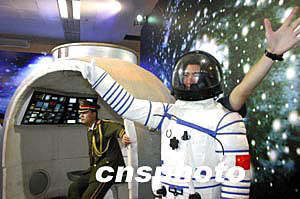 五月十五日,二零零四年全國科技活動周暨北京科技周在北京展覽館隆重舉行,“神舟五號”展臺吸引了眾多普通人一圓航天夢。作者:徐曦弋