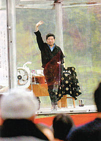 5月7日下午3時35分,絕食49天的陳建民在醫(yī)務人員攙扶下走出玻璃房進入升降機。他的體重由49天前的69公斤降到了現(xiàn)在的49公斤。
