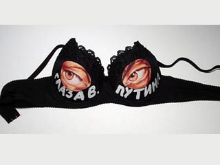 這次新的藝術品展覽包括25件胸罩,比爾佐表示,這些當中有一個是獻給庫土索夫的,另一個是描述普京的眼睛,前蘇聯總統勃列日涅夫 的眉毛, 赫魯曉夫臉上的瑕疵,以及葉利欽時代的統治。