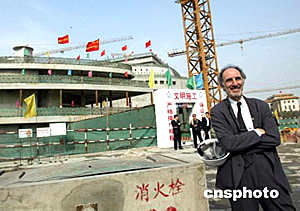 當地時間5月23日6時57分,法國巴黎戴高樂國際機場2E候機廳發生坍塌事故。目前事故中有兩名中國公民遇難。該候機樓的設計者是巴黎機場公司建筑設計所,原首席設計師為保羅·安德魯。他提供的中國國家大劇院的設計方案,目前正在施工中。據悉,保羅·安德魯正在趕回法國途中。圖為保羅·安德魯2003年4月25日北京國家大劇院工地。中新社記者:滿會喬