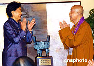 全國政協(xié)副主席、中央統(tǒng)戰(zhàn)部部長劉延東昨天上午主持佛指舍利瞻禮祈福大會開幕之后,馬不停蹄,中午出席了工商金融界的午餐會,下午會見了香港社會各界知名人士,晚上又同香港六大宗教領(lǐng)袖進行晚宴。在即將迎來香港回歸七周年紀念日的前夕,趁佛指舍利來港供奉的機會,香港社會各界與中央領(lǐng)導人共聚一堂,暢敘友情,用佛教語言說是“有緣份”。