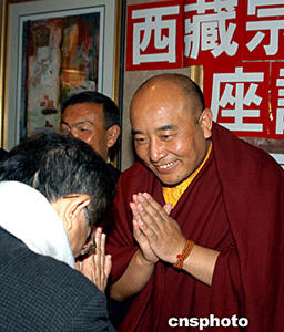 美東時間五月三十一日,正在紐約訪問的中國藏學家、活佛代表團出席紐約亞美文化協會主辦的“西藏宗教文化座談會”,四川省德格縣竹慶寺活佛多吉扎西向僑胞闡釋佛法。作者:趙海燕