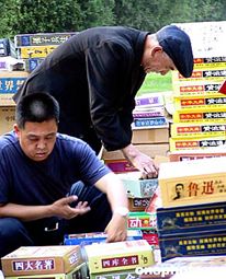 六月三日,首屆北京地壇夏季書市二十余萬種琳瑯滿目的圖書、音像制品和電子軟件全部以超低價格亮相。不少展位在書市的第一天就開出了“跳樓價”,原價六百七十八元的中國四大名著,現價只要五十元,打折打到了一折以下。更驚人的是原價一千二百八十元的《資治通鑒》,也是五十元就能搬回家。作者:韓藝冰