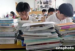 全國統一高考臨近,北京宏志中學的高三學生正在專心復習。北京宏志中學是二零零零年四月十日在北京第一百四十二中學的基礎上創辦的,是全國第一所專門招收家境貧困、品學兼優學生的完全中學,也是全國最大規模的公益性學校。中新社記者:張勤