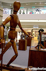 正在香港時代廣場舉行的“意大利節2004”節目豐富,同場展出的達文西機械設計水上行走裝置,別具特色。中新社記者:洪少葵