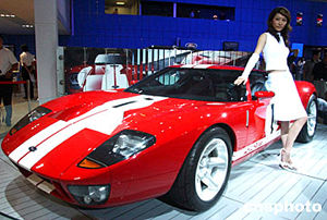 六月中旬,在北京中國國際展覽中心舉行的“2004北京國際車展”上,福特GT跑車亮相展會,讓觀眾眼前一亮。中新社記者:武仲林