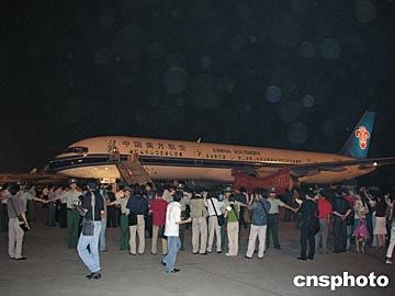 中國政府派出接送在阿遭襲受傷工人的專機,六月十四日晚十點五十分抵達山東省城濟南國際機場。當兩位輕傷員走下飛機玄梯時,受到了在機場等候多時的中鐵十四局員工的熱烈歡迎。歡迎人群高聲呼喚著“歡迎回家!”這親切的鄉音令傷員們激動得熱淚盈眶。作者:胡洪林