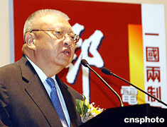 香港特首董建華,6月15日晚出席香港一國兩制研究中心在會展中心舉行的《鄧小平》電影首映籌款活動,并在儀式上發表講話。 中新社記者:趙振清