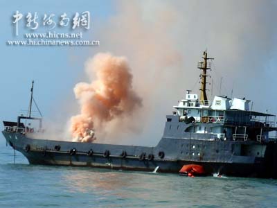 上午九點(diǎn)正,搜救演習(xí)指揮船粵海鐵上空升起三顆耀眼的信號彈,預(yù)先放置在南海指定海域“海難遇險(xiǎn)船”“南海號”甲板上冒出紅色和白色兩種煙霧,駐守在南海附近的中國搜救隊(duì)伍得到求救信號:“海難”發(fā)生了。