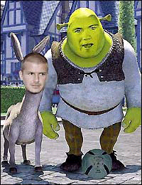 圖1則把貝克漢姆設計為了《怪物史萊克》中那只喋喋不休的驢子,而本屆歐錦賽上表現出色的小將魯尼則成為了史萊克。
