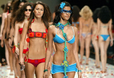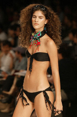6月30日,里約熱內盧時裝周上模特展示設計師Miquelina設計的比基尼。