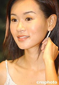影視紅星楊思琦7月3日在香港銅鑼灣軒尼詩道金至尊珠寶店重新展示電視劇“無名天使”劇中槍法超凡精準的新扎師姐形象。作者:趙振清