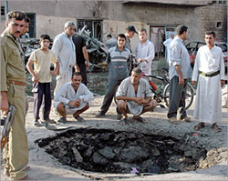 據(jù)悉,爆炸發(fā)生在當(dāng)?shù)貢r(shí)間6日下午4點(diǎn)15分左右,在地上留下了一個(gè)大坑;爆炸發(fā)生時(shí),在爆炸地點(diǎn)旁邊的一處民居中,有伊拉克人正在為上周日喪生的兩名同胞舉行祭奠儀式。