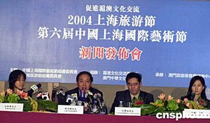 二00四年上海旅游節、上海國際藝術節推介新聞發布會,十日在澳門旅游塔會展中心舉行。會上上海市人民政府副秘書長楊曉渡希望借助澳門這一平臺,增進滬港澳三地的文化交流 ,促進三地的繁榮發展。作者:梁永強