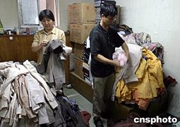 十二日北京小商品批發城的商戶正在清理被雨水浸泡過的地下室庫房,北京前兩日的暴雨造成該地下室積水三十公分,損毀了大批貨物。中新社記者:廖文靜
