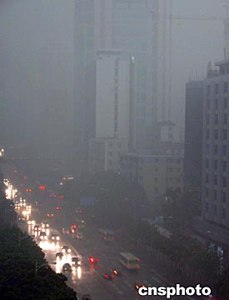 十三日中午,廣州上空突然電閃雷鳴,下起特大暴雨,晝如黑夜。作者:劉衛勇