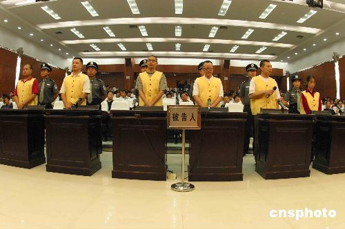“一二·二三”中石油川東北氣礦井噴特大安全事故七月十四日在重慶市第二中級人民法院開庭審理,事故中涉嫌重大責任事故罪的六名犯罪嫌疑人接受公開審判。作者:鄒輝
