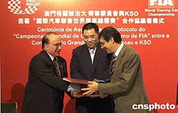 澳門格蘭披治大賽車委員會,十五日在澳門舉行記者招待會宣布:2005年的東望洋房車賽將成為“國際汽車聯會世界房車錦標賽”(FIA WTCC)的壓軸大戲。作者:梁永強