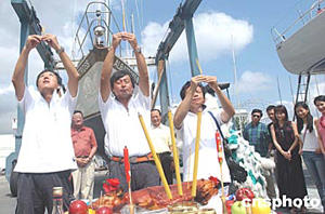 為紀念鄭和下西洋600周年﹐一艘命名為“鳳凰號”的單桅帆船22日在香港游艇會舉行下水禮﹐并將于明天出發﹐前往鄭和當年下西洋的出發地江蘇太倉﹐在那里正式啟動“鳳凰號”下西洋活動。作者:趙振清