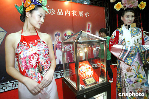 7月27日,大型后現(xiàn)代多媒體舞臺(tái)劇《尋衣記——云縷心衣歐迪芬》在北京舉行新聞發(fā)布會(huì),主創(chuàng)人員及部分演員與媒體見(jiàn)面,更有清代珍品內(nèi)衣展以及身著古裝的模特為新聞發(fā)布會(huì)助興。《尋衣記》將于7月30日、31日在北京保利劇院上演。中新社記者:盛佳鵬