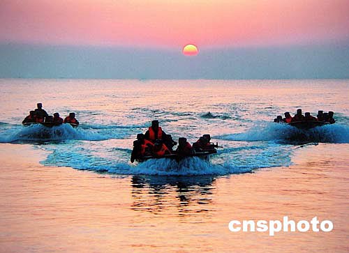 中國海軍精銳兩棲部隊今夏在南海島嶼演練沖鋒舟快速搶灘,以小股精兵出奇制勝。作者:龍運河