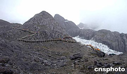 云南麗江的玉龍雪山景區(qū),頂峰的冰川公園風(fēng)景秀麗景色怡人,8月游客絡(luò)繹不絕。作者:洪少葵