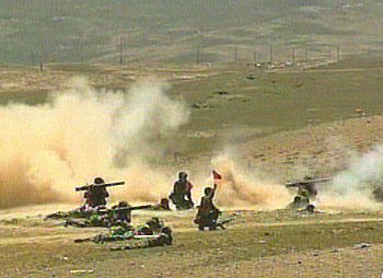 當(dāng)中方偵察隊搜剿至中巴作戰(zhàn)分界線右側(cè),子彈突然從一無名高地附近的山洞內(nèi)飛出,顯然有“恐怖分子”搞偷襲。偵察隊機(jī)敏應(yīng)對,采用正面封堵,兩側(cè)迂回方法,步槍、手榴彈并用。只短短幾分鐘,山洞內(nèi)就沒了動靜。在巴方“戰(zhàn)場”,窮兇極惡的“恐怖分子”使出惡毒一招,向攻上來的巴基斯坦部隊投擲化學(xué)手榴彈。巴方部隊迅速采取防護(hù)措施,殲滅了頑敵。而藏匿在一山洞內(nèi)的若干“恐怖分子”也暗襲巴軍未果,被打、炸死在洞內(nèi)。中巴武裝力量通過圍剿,奪取了一個又一個高地,消滅了一撥又一撥“恐怖分子”,兩軍也逐步向“恐怖分子”頭目可能藏匿的最后一個高地擠壓搜剿。10余名“恐怖分子”在這個高地上修筑工事,準(zhǔn)備進(jìn)行垂死掙扎。然而還沒等他們站穩(wěn)腳跟,一輪炮彈就落到了頭上。煙霧中,中方突擊隊和巴方特種分隊從東、西兩翼逼近高地。一時間槍聲大作,“恐怖份子”被全部殲滅。中巴部隊勝利會師,揮舞雙方國旗,歡慶勝利。