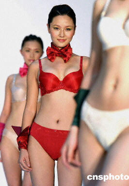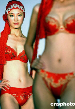 近日在北京舉行的旨在展示中國當(dāng)?shù)貎?nèi)衣發(fā)展趨勢的時裝秀上,T型臺上盡現(xiàn)東方嫵媚新視點(diǎn)。