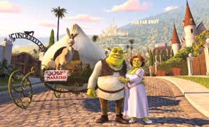 中新網8月11日電 據京華時報報道,集各種幽默元素于一體的“全球最賣座的3D動畫片”《怪物史瑞克2》,昨天起在全國上映。“極盡嘲諷調侃之能事”是影評人給予這部動畫片的普遍評價。那么究竟有多少經典影片片段被該片移花接木、有多少經典形象被該片無情戲弄?敬請看《史瑞克2》爆笑解讀。