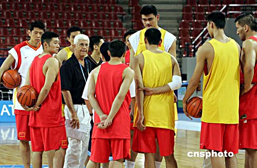 當地時間八月十二日下午,剛剛抵達雅典的中國男籃在雅典郊外的奧運會籃球館訓練。中新社記者:任晨鳴