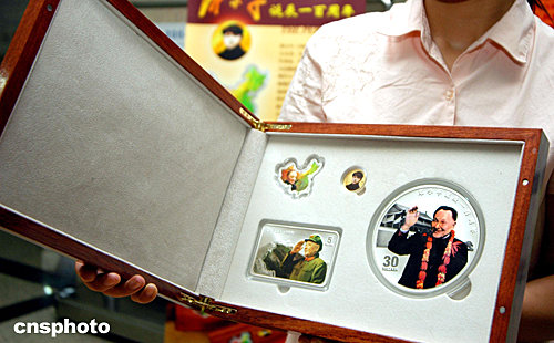 由澳大利亞與新西蘭聯合鑄造發(fā)行的鄧小平誕辰一百周年紀念彩色金銀幣在常州面世。該套紀念幣每套一金三銀,金幣采用純度99.99之8克純金鑄造,圖案為“青年鄧小平”;銀幣采用99.9之白銀鑄造,由澳大利亞珀斯鑄幣局聯同新西蘭庫克群島聯合鑄造。其中“鄧小平及天安門”重500克,中國共發(fā)行500套。作者:蔣振江