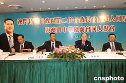 十四日,澳門特別行政區(qū)第二任行政長(zhǎng)官候選人何厚鏵展開了為期二周的競(jìng)選活動(dòng),當(dāng)天他分別出席了澳門中華總商會(huì)及澳門工會(huì)聯(lián)合會(huì)的座談會(huì),了解他們對(duì)未來五年特區(qū)政府施政及澳門整體發(fā)展的意見。澳門中華總商會(huì)會(huì)長(zhǎng)、全國(guó)政協(xié)副主席馬萬祺主持了商會(huì)的座談會(huì)。作者:梁永強(qiáng)