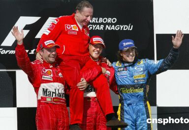 中新網8月16日電 今年的匈牙利大獎賽再一次成為了法拉利車隊的表演賽。大舒馬赫和巴里切羅包攬了前二名。大舒馬赫以1小時35分26秒131的成績,取得他今年第12個分站冠軍并幫助車隊提前5站取得年度冠軍。