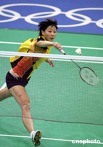 中國參加雅典奧運會女子羽毛球單打比賽的選手周密,當地時間8月16日以2比0輕松戰勝保加利亞選手佩蒂婭,與隊友張寧、龔睿那一同進入前四名。中新社記者:任晨鳴